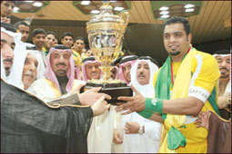 توّج نائب أمير المنطقة الشرقية الأمير جلوي بن عبد العزيز وبحضور محمد المطرود رئيس الاتحادين السعودي والعربي لكرة اليد فريق الخليج بطلاً لبطولة الأندية العربية على كأس الأمير فيصل بن فهد - رحمه الله - بعد فوزه المستحق على أمل سكيكدة الجزائري (33-30) وسط حضور جماهيري ساند الخليج بحرارة.