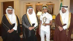 استقبل صاحب السمو الملكي الأمير فيصل بن بندر بن عبدالعزيز أمير منطقة القصيم رئيس مجلس إدارة نادي الفروسية بالمنطقة بحضور سمو نائبه صاحب السمو الملكي الأمير الدكتور فيصل بن مشعل بن سعود بن عبدالعزيز ومدير عام النادي الأستاذ أحمد بن عبدالله التويجري ظهر يوم أمس الأول بمكتب سموه بمقر ديوان إمارة منطقة القصيم في مدينة بريدة الخيال فهد بن يوسف المزيني الذي حصل على جائزة وكأس خادم الحرمين الشريفين لشوط سباق الخيالة السعوديين، والذي تنافس عليه خمسة عشر فارساً من مختلف فرسان ميادين الفروسية بالمملكة، وكان من ضمن المشاركين سبعة فرسان من نادي الفروسية بالقصيم وهم يشكلون الأكثر عدداً في المشاركة يتنافسون فيما بينهم وزملائهم من الميادين الأخرى للحصول على هذه الهدية الغالية، حيث حقق المركز الثالث من هذا الشوط الخيال فهد المزيني حيث تشرف بالسلام على خادم الحرمين الشريفين واستلم الكأس والجائزة.