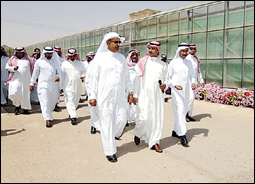 قام معالي وزير الزراعة الدكتور فهد بن عبد الرحمن بالغنيم الثلاثاء الماضي بزيارة لمحافظة ضرماء حيث استهل زيارته بلقاء محافظ ضرماء عبد الرحمن الدهمش ومدير فرع الزراعة محمد العبيد وعدد من المواطنين وأعضاء المجلس البلدي والمحلي حيث استعرض معاليه العديد من الموضوعات التي تهم المزارعين في المحافظة والمراكز التابعة لها ثم توجه معاليه لمزارع الرشيد للبيوت المحمية حيث قام ومرافقوه بجولة فيها اطلع على عملها وإنتاجها، وفي ختام جولته أعرب معاليه عن سعادته بهذه الزيارة وقال (للجزيرة): تعتبر محافظة ضرماء من المحافظات الرئيسة المنتجة للمنتجات الزراعية وتغذي الأسواق الرئيسة في منطقة الرياض التي تعتبر أكبر منطقة تسويقية في المملكة وحول أهداف الزيارة أوضح معاليه أن هذه الزيارة تقع ضمن رغبة الوزارة في الخروج باستراتيجية واضحة للإسراع في تطوير استخدام البيوت المحمية في الإنتاج النباتي، معتبراً مجموعة الرشيد للبيوت المحمية من أكبر المجموعات التي تقوم بتنفيذ وإدارة وتشغيل البيوت المحمية على نطاق محافظات كثيرة من المملكة وأضاف: قد تلقينا دعوة من الأخ محمد الرشيد لزيارة المزرعة في ضرماء مقدماً الشكر له مؤكداً أنها فرصة للاطلاع على البيوت المحمية وبإذن الله قريباً نخرج بتصور واضح لما يمكن عمله من قِبل الوزارة والجهات الحكومية الأخرى الداعمة ممثلة في البنك الزراعي العربي السعودي بحيث نزيد من تنمية والاستفادة من البيوت المحمية مثمناً أن الهدف الرئيس الذي تسعى إليه الوزارة تقليص استخدام المياه معتبراً البيوت المحمية من الوسائل المجدية في تقليص استخدام مياه الري وحول انطباع معاليه بعد نهاية الجولة أكد أنه انطباع ممتاز وقال شاهدنا بيوتاً تُدار بأسلوب فني متميز والزراعة الموجودة فيها جميعها زراعة لا تستخدم المواد الكيميائية أبداً والتلقيح يتم عن طريق النحل ومكافحة الآفات تتم عن طريق المكافحة الحيوية وتعتبر منتجاً يتطلع إليه المستهلك وخصوصاً أننا مع الثقافة والوعي أصبح المستهلك في المملكة يتطلع إلى منتجات أكثر جودة وأكثر صحية، وقد رافق معاليه في هذه الزيارة الدكتور عبد الله العبيد وكيل الوزارة لشؤون الأبحاث والتنمية الزراعية والمهندس عبد العزيز الحماد مدير شعبة المستشارين والدكتور خالد الفهيد مدير العلاقات العامة والمهندس عبد الكريم الغامدي مدير عام الإدارة العامة لشؤون الري والمهندس عبد الله الهندي مدير عام التنمية الزراعية والمهندس فهد آل ساقان مدير عام وقاية المزروعات والأستاذ محمد العبيد مدير فرع الزراعة بضرماء.