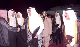 أعرب صاحب السمو الشيخ حمد بن خليفة آل ثاني أمير دولة قطر عن تحياته والشعب القطري الشقيق لخادم الحرمين الشريفين الملك عبدالله بن عبدالعزيز آل سعود مقرونة بموفور الصحة والسعادة وللشعب السعودي التقدم والرفعة والازدهار.