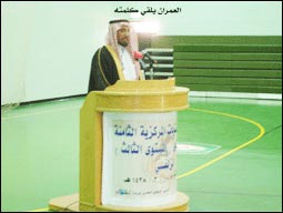 بعده ألقى مدير التربية والتعليم الأستاذ حمد بن منصور العمران كلمة بهذه المناسبة فقال: