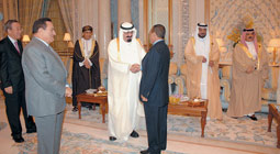 سبقت الجلسة الاختتامية لقمة الرياض التي أنهت أعمالها أمس لقاءات ثنائية وثلاثية بين القادة ورؤساء الوفود العربية حيث استقبل خادم الحرمين الشريفين الملك عبدالله بن عبدالعزيز آل سعود في قاعة الاستقبال بمركز الملك عبدالعزيز الدولي للمؤتمرات بعد ظهر أمس إخوانه أصحاب الفخامة والسمو قادة ورؤساء وفود الدول العربية المشاركين في اجتماعات مؤتمر القمة العربية في دورتها العادية التاسعة عشرة التي اختتمت أعمالها أمس.