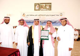تسلم الزميل أحمد الدويش من قسم التحرير بمكتب الجريدة بالزلفي درعاً تكريمياً من ميدان الفروسية في محافظة الزلفي سلمه رئيس مجلس إدارة ميدان الفروسية محافظ الزلفي الأستاذ زيد بن محمد آل حسين و بحضور مدير عام النادي الأستاذ محمد بن حمد البدر وذلك نظير الجهود التي بذلها المكتب في تغطية السباقات التي أقامها الميدان خلال الموسم الفروسي الحالي.