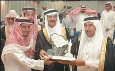 وفي نهاية الأمسية الثقافية قدَّم محافظ المذنب درعاً تذكارياً للأستاذ خالد بن حمد المالك ودرعاً مماثلاً للدكتور حسن بن فهد الهويمل الذي تولَّى تقديم المحاضر، ثم تناول الجميع طعام العشاء المعد بهذه المناسبة.