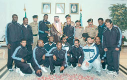 * تبوك - عبدالرحمن العطوي: قدم صاحب السمو الملكي الأمير فهد بن سلطان بن عبدالعزيز أمير منطقة تبوك أمس الاثنين مكافأة مالية للاعبين والجهاز الفني بنادي الوطني بلغت مليون ريال بمناسبة تأهل الفريق لكأس دوري خادم الحرمين الشريفين، وسلم سمو أمير منطقة تبوك شيكاً بالمبلغ لرئيس النادي الوطني |