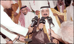وتابع سموه يقول: (نحن نرى كل زعماء العالم يأتون إلينا لأخذ رأيه ومشورته ونصيحته لأسباب الخير.. ونحمد الله أن قيض لنا هذا الرجل وأرجو من كل قلبي أن ندعو له بالتوفيق والسعاده وطول العمر) كما أشاد سموه بجهود سمو ولي العهد في خدمة الوطن والمواطن قائلا (إني أفتخر بأخي وصديقي صاحب السمو الملكي الأمير سلطان بن عبدالعزيز ولي العهد نائب رئيس مجلس الوزراء وزير الدفاع والطيران والمفتش العام على هذه الثقة التي هو في محلها).