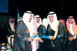 سلَّم الأمير سلمان بن عبدالعزيز أمير منطقة الرياض الأمير وليد بن ناصر بن فهد الفيصل الفرحان آل سعود وثيقة التخرج في حفل جامعة الملك سعود في الرياض الأسبوع الماضي.