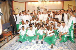 بحضور صاحب السمو الملكي الأمير عبدالله بن فيصل بن تركي رئيس هيئة أعضاء الشرف بالنادي الأهلي استقبل صاحب السمو الملكي الأمير خالد بن عبدالله بن عبدالعزيز - عضو شرف النادي الأهلي- بقصر سموه مساء أمس إدارة ولاعبي النادي الأهلي بمناسبة تحقيق الفريق لبطولة كأس سمو ولي العهد -حفظه الله- كمنجز رائع يضاف لمنجز الحصول على كأس الأمير فيصل بن فهد -رحمه الله- هذا الموسم.. ويأتي استقبال سموه لأبطال الموسم ترجمة لتقديره للجهد الكبير المبذول والعطاء السخي الذي تجلى في ميدان البطولة وأثمر في النهاية عن حصاد ذهبي كانت الجماهير الأهلاوية تتطلع إليه بانتظار وشغف.. كما حرصت إدارة النادي الأهلي برئاسة أحمد المرزوقي والجهازان الفني والإداري ولاعبو الفريق على تقديم بطولة كأس ولي العهد الغالية هدية لسموه عرفاناً بدوره الفاعل ودعمه المادي والمعنوي ووقفته الدائمة مع ناديه مما أسهم إسهاماً مباشراً في تحقيق البطولتين حيث كان لبعد نظر سموه ورؤيته الثاقبة دور مهم في تحديد المسار والوصول إلى الهدف.. وكان سموه قد رحب بالإدارة والفريق الكروي وأشاد بما قدمه اللاعبون طيلة هذا الموسم على الصعيدين المحلي والعربي من عطاءات قوية مشيراً إلى عوامل التعاضد والدعم والحرص على تمثيل الأهلي خير تمثيل التي كونت صورة جميلة لدى المتابعين للفريق الأهلاوي هذا الموسم واستحق عليها الثناء والتقدير.. وتمنى أن تتواصل تلك المستويات والنتائج في المواسم المقبلة من أجل إرضاء طموحات الجماهير الأهلاوية الوفية التي اعتادت رؤية ناديها دائماً في منصات التتويج كبطل للكؤوس.. وتناولت الإدارة واللاعبون طعام العشاء على مائدة سموه والتقطت الصور التذكارية بهذه المناسبة وقد قدم رئيس النادي أحمد المرزوقي خالص شكره وتقديره للدعم الكبير الذي يوليه قلب الأهلي النابض لناديه مما انعكس على مسيرة الفريق الكروي بشكل خاص والنادي بشكل عام من حيث الاستقرار والطموح في تحقيق المزيد من المنجزات.