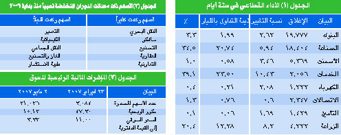 يوضح الجدول رقم (3) مقارنة بين المؤشرات المالية الرئيسية للسوق في 23 فبراير من العام الماضي وبين مؤشراته في نهاية إغلاق الأربعاء الأخير، حيث يتضح مدى التحسن الكبير الذي طرأ على متغيراته الرئيسية، بحيث زاد عمق السوق من نحو 3.1 مليارات سهم إلى 21.02 مليار سهم. كما تحسن مكرر ربحية السوق من 47.3 مكرراً في 23 فبراير 2006 إلى 15.12 مكرراً في الأربعاء الأخير. أيضاً تحسن بقوة مؤشره (السعر السوقي إلى القيمة الدفترية) من 11 مرة إلى 3.32 مرة، وهو تحسن كبير، بل متميز، قد لا يمكن تصور حدوثه على مدى يناهز العام الواحد. إن ما حدث في السوق من تصحيح وتحسين وإصلاح ربما يعد فريداً في سماته. فرغم عنف سبل الوصول إلى هذه التحسينات، إلا إنه ينبغي الإشادة بها. وإذا كنا نشيد بمؤشرات السوق الحالية، فكيف إذا عرفنا أن هذا المسار الإصلاحي للسوق لم ينته بعد، بالطبع ينتظر أن تزداد عناصر التميز المالي في مؤشرات السوق بشكل تجعله أكثر تنافسية عالمياً. وعليه، فإن أسهم السوق في ظل استمرار حدوث العديد من الإصلاحات قد تصل إلى حد عدم المقدرة على شرائها إلا في السوق السوداء مستقبلا لدرجة أنك ستطلب السهم أياماً وأياماً ولا تجد من هو راغب في بيعه. ولكن مخاوف كبيرة تدور حول طبيعة من سيمتلكون المقدرة على هذا الطلب مستقبلاً؟.