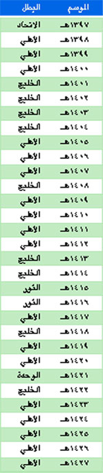 وقد جاء السجل الذهبي لأبطال الدوري الممتاز منذ بدايته حتى نهائي أمس: