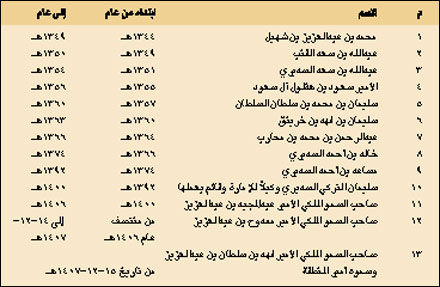 ويسر الجزيرة أن تنشر أسماء الأمراء الذين تولوا إمارة منطقة تبوك وتاريخ توليهم الإمارة وهم حسب الجدول: