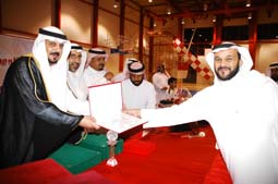 على شرف سعادة محافظ عنيزة المهندس مساعد السليم وبحضور الأستاذ عبدالعزيز السناني المدير الجديد لمكتب رعاية الشباب بمنطقة القصيم والأستاذ أحمد المرزوق رئيس النادي العربي وبمشاركة العديد من الشخصيات الرياضية البارزة أبرزها الأب الروحي لأبناء العربي المربي الفاضل سليمان البادي والأستاذ حمد الحميميدي، والأستاذ مساعد السناني عضو شرف النادي، ورئيس نادي النجمة الأستاذ صالح الواصل، وجماهير غفيرة غصت بهم الصالة الدولية (الحديثة) بالنادي احتفل العرباويون بفريق كرة السلة للدرجة الأولى الصاعد للدوري الممتاز، وبدأ الحفل بكلمة لنائب رئيس النادي المهندس يوسف الناجم الذي شكر سعادة المحافظ على اهتمامه ومتابعته لشؤون النادي وتشريفه لحفل التكريم، وأوضح الناجم أن البناء السليم والتخطيط المدروس بعناية والدعم المادي والمعنوي الذي وفرته إدارة النادي جميع هذه الأمور ساهمت في تحقيق الحلم وإنجاز الصعود إلى الدوري الممتاز كأول ناد في المنطقة يحقق هذا الإنجاز، وشكر نائب رئيس النادي كل من دعم وساند إدارة النادي في تكريم أبطال الصعود، بعد ذلك ألقى رئيس مجلس أعضاء الشرف الأستاذ صالح النهابي كلمة بهذه المناسبة شكر في بدايتها صاحب السمو الملكي الأمير فيصل بن بندر أمير منطقة القصيم وسمو نائبه صاحب السمو الملكي الأمير فيصل بن مشعل بن عبدالعزيز على دعمهما اللامحدود للحركة الرياضية في المنطقة ومتابعتهما الدقيقة للأندية ونشاطاتها مما ساهم أن تحتل الرياضة في القصيم مكانة مرموقة على مستوى المملكة، وأكد النهابي أن جهود الصعود تحققت بفضل من الله ثم بتكاتف جميع محبي النادي من مجلس إدارة وأعضاء فريق السلة وجماهير. ثم عرض فيلم مصور عن مسيرة الفريق الأول لكرة السلة في مشوار الصعود، واستمتع الحضور بعد ذلك بفواصل فنية جميلة من فنون ومهارات كرة السلة أبدع في عرضها للجمهور براعم مدرسة النادي بقيادة المدرب المنصف عنينو. وفي لحظات ماتعة كرّمت إدارة النادي الأستاذ عبدالعزيز السناني بمناسبة ترشيحه لمنصب مدير مكتب رعاية الشباب في منطقة القصيم وقدمت درعاً تقديرياً سلّمه المهندس مساعد السليم، تلا ذلك تكريم مميز لجريدة الجزيرة بشهادتين بمناسبة تغطيتها المميزة لدورة الصعود وانفرادها بتخصيص مساحة كبيرة من خلال تقرير مفصل عن مشوار الفريق في رحلة الصعود ونقل مشاعر الفرح والسرور والأفراح التي عاشها النادي ومنسوبيه من إدارة ولاعبين وجماهير بعد صعود فريقهم إلى دوري كبار السلة، وكان لنجوم الإنجاز الحظ الأوفر من التكريم المادي والمعنوي وقدمت إدارة النادي المكافآت المالية لأفراد فريق السلة لدرجتي الأولى والشباب، كما تم تكريم عدد من الشخصيات الرياضية التي أسهمت في تحقيق الإنجاز وكانت البداية بتكريم الأستاذ فهد الوهيبي رئيس النادي السابق، والأستاذ صالح الواصل رئيس نادي النجمة، والأستاذ أحمد الضيف التميمي عضو شرف النادي والأستاذ محمد الخشيبان عضو إدارة نادي النجمة، كما تم تكريم كافة أعضاء اللجان العاملة في دورة الصعود، واختتم الحفل بالتقاط الصور الجماعية لنجوم الصعود مع سعادة محافظ عنيزة.