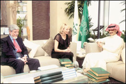 وشكرت الأميرة كورينا الأمير الوليد على إتاحة الفرصة للقاء سموه ونقلت له تحيات جلالة الملك خوان كارلوس ملك إسبانيا، ومن ثم تبادل الجانبان الحديث حول العلاقات المتميزة بين المملكة العربية السعودية وإسبانيا.