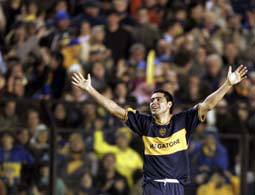 سجّل لاعب خط الوسط خوان رومان ريكليمي هدفاً من تسديدة من 30 متراً ليساعد بوكا جونيورز على الفوز على جريميو 3 - صفر في مباراة الذهاب بالدور النهائي لبطولة كأس ليبرتادوريس لاندية أمريكا الجنوبية لكرة القدم أمس الأول الأربعاء. وضع رودريجو بالاسيو الفريق الأرجنتيني في المقدمة بعدما بدا أنه في موقف تسلل وأنهى جريميو المباراة بعشرة لاعبين بعد طرد ساندرو جويانو. وأضاف ريكليمي الهدف الثاني لأصحاب الأرض وتبعه بابلو ليديسما بالهدف الثالث في نهاية المباراة. بدأت المباراة بعد 14 دقيقة من موعدها المقرر بسبب استمرار عملية تنظيف الملعب من الورق الذي ألقي من المدرجات خلال نزول الفريقين لأرض الملعب. بدأ الفريق البرازيلي الزائر الفائز بكأس ليبرتادوريس مرتين بثقة وشن هجوماً على منافسه الأرجنتيني. إلا أن بوكا الفائز بكأس ليبرتادوريس خمس مرات تقدم بهدف في الدقيقة 18 بعد أن سدّد ريكليمي ركلة حرة باتجاه المرمى قابلها مارتن باليرمو برأسه لتصل إلى بالاسيو الذي وضعها في المرمى فيما احتج لاعبو جريميو على احتساب الهدف. وأوضحت لقطات الإعادة التلفزيونية أن باليرمو وبالاسيو كانا في موقف تسلل عندما لعبت الكرة.