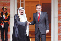 تأكيداً لمبدأ تطوير العلاقات السعودية الإسبانية وخصوصاً الاقتصادية والاستثمارية أعطى خادم الحرمين الملك عبدالله بن عبدالعزيز وملك إسبانيا خوان كارلوس أمس دافعاً قوياً لهذه العلاقات إذ شهد الزعيمان أمس الإعلان عن إنشاء صندوق البنى التحتيه الإسباني - السعودي برأسمال |