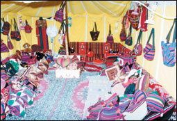 وتمثل الخيمة أو بيت الشعر الملجاء الوافي الذي يرتاح فيه البدوي وعائلته من عناء حياتهم الشاقة ويمتعوا نظرهم بالمنسوجات الزاهية بألوانها ونقوشها الجميلة والتي تختلف بالمقارنة مع بساطة حاجياته.