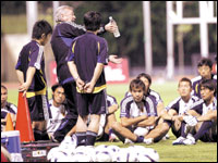 وسخر من صحفيين يابانيين سألوه عن مستقبله مع منتخب اليابان قبل أن يبدأ كأس آسيا بينما ادت انتقاداته اللاذعة للفريق بعد مباراة يوم الاثنين إلى بكاء مترجمه.