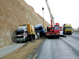 يمثل طريق الرياض جدة شرياناً حيوياً هاماً يربط شرق المملكة بغربها حيث يشهد حركة مرورية كثيفة ويعاني مرتادو هذا الطريق من عقبة أصبحت تمثل خطراً لما تشهده من حوادث مرورية شنيعة راح ضحيتها أرواح بريئة. وهذه العقبة هي نزلة القدية الواقعة بالقرب من مركز قصور المقبل التابع لضرماء. وقد زادت وزارة النقل من معاناة أصحاب الشاحنات عندما بدأت أعمال كشط الطبقة الأسفلتية لهذا الطريق وتحويل جميع الشاحنات لطريق ديراب الذي يشهد أيضاً صيانة في عدد من أجزائه مما سبب كثرة الحوادث وزاد من خطورة طريق ديراب. وللوقوف على أهم المشكلات التي يواجهها أصحاب السيارات أثناء مرورهم بنزلة القدية، كان للجزيرة لقاءات مع العديد منهم حيث يقول الأمين آدم سوداني: تمثل هذه المنطقة مشكلة لأصحاب الشاحنات نظراً لانحدارها الخطر وطولها، ويعتمد الوقت في الصعود والنزول على الحمولة وثقل السيارة، فأحياناً نستغرق في الصعود ساعة والنزول 40 دقيقة، ومع هذا الصعود أسهل لأن النزول يعتمد على الفرامل، ويمكن أن يقطع لي الهواء أو أي احتمالات ثانية وخاصة أيام المطر لأن التريلا تختلف عن السيارات الأخرى قد لا تستطيع التصرف فيها فتسبب لك الحوادث ولغيرك، فيجب على أصحاب الشاحنات أن يعملوا حسابهم في الصعود والنزول. وأوضح أن من أبرز المشكلات التي يعانيها أصحاب الشاحنات أنوار السيارات المقابلة أو التي تسير خلفك فهي تجهر السائق ولا يستطيع رؤية الطريق فتسبب الحوادث. ومن مشكلات الصعود وجود بعض السيارات المحملة حمولة ثقيلة لا تستطيع الصعود فتعيق الطريق وتسبب مشكلات للسيارات الأخرى. ويقول سعيد حسن علي مصري الجنسية: إننا نفضل ديراب على القدية لأن ديراب ثلاث وصلات، أما القدية فهي وصلة واحدة، ومن أبرز ما نعانيه أثناء النزول فيها هو انحدار السيارة وخاصة إذا كانت محملة حيث لا نستطيع السيطرة عليها. وأفاد بأنه يأخذ نصف ساعة لقطع هذه الوصلة أثناء النزول. أما قيام الدين محمد هندي الجنسية فيقول: إن هذه النزلة خطرة على الشخص الجديد الذي ينزل أول مرة حيث لا يهدئ السرعة فتنزل السيارة ولا يستطيع الوقوف، أما في الصعود فلا يغير النمرة اثنين أو ثلاثة. أما اسماعيل كونجي فيقول: إن هذا الطريق فيه صعوبة في الصعود والنزول وخاصة إذا كانت الحمولة ثقيلة أو كان فيه أمطار حيث تستغرق من الوقت في الصعود 25 دقيقة وفي النزول 30 دقيقة وتزداد الخطورة إذا كان فيه أمطار. أما قائد الشاحنة سعيد عبده سعيد مصري فيقول: (لي ثماني سنوات أعمل في النقل وما عندي مشاكل لأن الإنسان إذا كان عارف قدامه طريق خطر بيهدي السرعة وبيعمل حسابه بنمرة ثقيلة). أما تاج محمد باكستاني فيقول (إن النزول والسيارة محملة موت لازم يهدي السرعة لأن الفرامل يمكن ما تعمل مع الحرارة وهناك مشاكل مثل سرعة بعض السيارات الصغيرة وتجاوزها الخاطئ أما مشاكل الصعود فهي أسهل من النزول وتعتبر ديراب أسهل). أما صلاح الطيب سوداني الجنسية فيقول (ما فيه مشاكل ولكن الصعود قد نتأخر فيه ساعة كاملة والنزول 25 دقيقة وتكثر المشاكل إذا كان هناك أمطار لا نطلع ولا ننزل لأن الشاحنة يمكن تتزحلق فتسبب الحوادث).