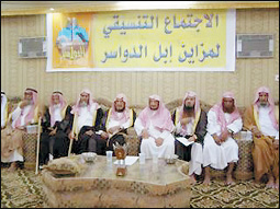 نظم أبناء قبيلة الدواسر الاجتماع التنسيقي الأول لمحافظتي وادي الدواسر والسليل لمزاين إبل الدواسر الذي صدرت الموافقة من الجهات المختصة بتنظيمه في شهر شوال القادم - إن شاء الله - برعاية ودعم من صاحب السمو الملكي الأمير مشعل بن عبد العزيز آل سعود، حيث بدأ الاجتماع بآيات من القرآن الكريم، ثم كلمة لمدير مكتب الندوة العالمية للشباب الإسلامي الشيخ مسعد بن عايض آل ناهش تحدث فيها عن أهمية الالتفاف والتعاون وتكاتف الجهود في الأمور الخيرة وكل ما من شأنه رفع اسم القبيلة.