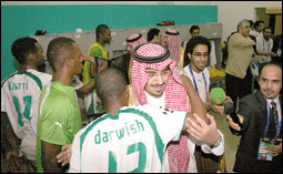 وعرج سموه في حديثه للإعلامين ظهر أمس (الثلاثاء) في قاعة فندق الردجز كارلتون لوضع المنتخب الذي تنتظره مباراة هامة اليوم في الدور نصف النهائي للبطولة أمام نظيره الياباني وقال: أثبت منتخبنا انه منتخب متجدد ومنبع للمواهب فمنذ سنوات لم أر المنتخب بمثل هذه الوضعية الرائعة التي بلغ فيها درجة كبيرة من الكمال بحيث انك تجزم الان بأن اللاعبين الاحتياطيين بقوة وجاهزية الأساسيين وهو امر مفرح ومشجع لتوقع الافضل مع هذا المنتخب الفتي وأضاف تنتظرنا غدا (اليوم) مباراة هامة مع المنتخب الياباني وكلنا امل أن يتمكن نجومنا من الحسم لنبقي على فرحة الجماهير السعودية ثم توقف سموه قليلا قبل أن يقول لدي توضيح للاخوه الإعلاميين ارغب في نقله لكل مواطن سعودي حول المعاناة التي وجدها منتخبنا في رحلته من جاكرتا إلى هانوي فالرحلة كانت طويلة ومرهقة حيث ان الرحلة تستغرق عادة حوالي أربع ساعات ولكنها امتدت لأكثر من سبع ساعات لأننا تنقلنا من مطار إلى مطار إلى جانب التوقف والانتظار في كل مطار وأرغب اشعاركم أن القيادة دعمتنا بطائرة خاصة لكن مع الاسف ليس لدى فيتنام مطار يستطيع استقبالها كما أن الطائرة الاخرى (اصغر منها) لم نجد مطار يستوعبها وحرم منتخبنا بالتالي من ميزة الاستفادة من الطائرة الخاصة التي كانت ستجنبه الكثير من المعاناة التي وجدها.. والحقيقة أن فيتنام ليس لديها القدرة على تنظيم بطولة بهذا الحجم فالمعاناة امتدت أيضا للجماهير التي ستحرم من متابعة منتخبها ومؤازرته بسبب صعوبة الحصول على تأشيرات الدخول لفيتنام.