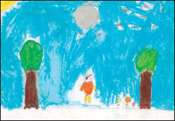 البلد بيوتهم وأغلقوا الأبواب والنوافذ، وهكذا يأتي الليل، فيظهر القمر، ويدخل بيوت أهل البلد من الأبواب والنوافذ ويجلس الأهالي على عتبات البيوت يحكون الحكايات، ويضحكون.