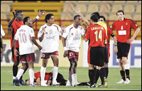 فيما كلف المالديفي عبد الحميد عبد الغفور بمراقبة المباراة، والقطري هاني طالب بمراقبة الحكام. تجدر الإشارة إلى أن الاتحاد القاري كاد أن يرتكب خطأً جسيماً لا يغتفر حينما اختار لقيادة مباراة الذهاب التي ستقام في أبوظبي في 7 من رمضان حكماً لبنانياً (موقوفاً) بقرار من الاتحاد ذاته قبل أن يتدارك مسؤولو الاتحاد خطأهم الجسيم ويستبدلونه بطاقم قطري.