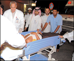 لقي ثلاثة أشخاص مصرعهم فيما أصيب 12 آخرون في حادث مروع مساء أمس الأول شهده طريق خريص الأحساء بين سيارة من نوع نيسان داتسون تقل خمسة مواطنين سعوديين وحافلة ركاب لعمالة آسيوية تقل 10 من العمال وفور تلقي البلاغ هرعت إلى موقع الحادث فرق من الهلال الأحمر السعودي ومرور الأحساء والدفاع المدني لمباشرة الحادث والذي نجم عنة ثلاث وفيات وإصابة الباقين بجروح وكسور متفرقة حيث تم نقلهم إلى مستشفى الملك فهد بالهفوف ثلاثة منهم في حالة حرجة حسبما وصفه مصدر في مستشفى الملك فهد بالهفوف فيما استقرت حالات المصابين الآخرين من جهته زار مساعد مدير الشؤون الصحية في محافظة الأحساء للشؤون الإدارية والمالية عبد اللطيف العرفج المصابين الـ12 في مستشفى الملك فهد في الهفوف، واطمأن خلال الزيارة على أوضاعهم الصحية والخدمات المقدمة لهم فيما لا يزال التحقيق جارياً في أسباب وملابسات الحادث بمتابعة من مدير إدارة مرور محافظة الأحساء المقدم سليمان بن عبد الله الزكري.
