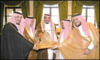 وخلال اللقاء قدما لسموه الشكر والتقدير على ما حظي به الملتقى من دعم ورعاية من سموه مما كان له أكبر الأثر في إنجاح الملتقى. وفي نهاية اللقاء قدما لسموه درعا تذكارية بهذه المناسبة.