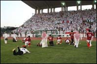وأضاف العجلان إدارة التعاون كانت هي الأخرى مرعوبة ورئيسهم السراح كان قبل المباراة منزوياً وحده خائفاً حتى إنه أمر الإداريين بعدم تسليم اللاعبين (الورود) التي قدمها الشيخ صالح المحيميد رئيس أعضاء شرف الرائد للاعبي الرائد والتعاون لاعتقاده أن فيها شيئاً..!!! وهو الأمر المضحك لكنه يدل دلالة صادقه على الرعب الذي حفره الرائديون في قلوب التعاونين منذ مباراة المطر الشهيرة التي حولت مبنى التعاون إلى سكن للأشباح..!!