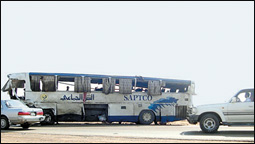 لقي 9 أشخاص مصرعهم أمس وأصيب 45 آخرين في حادث مروري مروع على طريق جازان المضايا نتيجة اصطدام باص تابع لترحيل الجوازات بالمنطقة بسيارة جيب لاندكوزر.