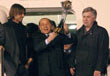 وحمل كافة اللاعبين الكأس وأخذوا يلوحون للجماهير المنتظرة قبل أن ينزلوا على سلم الطائرة.