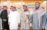 وفي نهاية الشوط الثالث ونيابة عن الشيخ صالح النهابي رئيس مجموعة البركة الطبية سلم نائب مدير عام النادي الأستاذ حبيب الحبيب بحضور مدير العلاقات العامة والإعلام سلمان الضباح كأس مجموعة البركة لمالك الجواد الفائز عبدالعزيز الفهيد.
