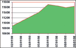 رغم خسارة المؤشر الأسبوع الماضي لحوالي 522 نقطة، ورغم حالة التشاؤم التي أغلق عليها السوق، إلا أن السوق تمكن من تعويض كافة خسائره في الأسبوع الماضي، ولامس قمة جديدة بلغت 11794 نقطة، لكن لم يتمكن من الصمود عندها كثيراً، فأغلق عند 11643 نقطة. والأمر الإيجابي والمتميز هذا الأسبوع هو أنه أتى بعد فترة صعود ليست بالقصيرة. كما أن هذا الأسبوع شهد صعوداً قوياً يومي السبت والأحد تلاه هبوط طفيف يومي الاثنين والثلاثاء. ولما كان هذا الأسبوع لم يشهد تغيراً هاماً سوى الإعلان عن طرح زين والإنماء، فإننا ننضم إلى من يعتقدون بأنه قد يكون قد حدث نوع من تسرب أو توقع البعض حول هذه الاكتتابات قبل الإفصاح عنها رسمياً، ومن ثم يمكن تفسير الصعود القوي في بداية الأسبوع، ثم الركود في منتصفه. باختصار ربح المؤشر هذا الأسبوع نحو 6.9%، ليمثل أسبوع ربحي جديد.