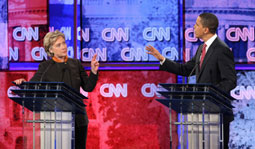 وردت كلينتون (لم أقل أي شيء أبداً في هذا الصدد). وأجاب أوباما وقد بدا عليه الغضب بوضوح (لكن زوجك فعل). وردت كلينتون بالحدة نفسها (أنا التي أقف أمامك وليس هو). وسأل المرشح الثالث جون إدواردز بدهشة (هل هناك ثلاثة أشخاص في هذا النقاش أم اثنان فقط)؟.