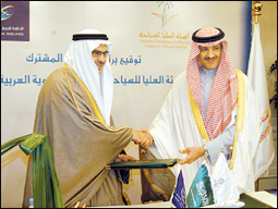 وقع صاحب السمو الملكي الأمير سلطان بن سلمان بن عبدالعزيز الأمين العام للهيئة العليا للسياحة ومعالي مدير عام الخطوط الجوية العربية السعودية المهندس خالد بن عبدالله الملحم بعد ظهر الثلاثاء 14 محرم الجاري على برنامج العمل المشترك لتفعيل مجالات التعاون بين الهيئة العليا للسياحة والمؤسسة العامة للخطوط الجوية العربية السعودية حول تطبيق توصيات الإستراتيجية العامة لتنمية السياحة الوطنية.