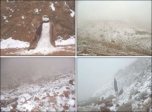 اكتست جبال اللوز حلتها البيضاء بعد أن تساقطت الثلوج على هذه الجبال التي تبعد عن مدينة تبوك مسافة 140 كم حيث بدأ ت تساقط الثلوج منذ مساء أمس الأول الثلاثاء على هذه المرتفعات التي اكتظت بالمتنزهين القادمين من مدينة تبوك ومختلف محافظتها حيث تحط الثلوج رحاها على هذه المنطقة وتصبح حلة بيضاء ويأتي هذا بعد هطول الأمطار الغزيرة على منطقة تبوك التي استمرت لمدة يومين مع غياب أشعة الشمس عنها لليوم الرابع على التوالي حيث تعيش منطقة تبوك بجبالها وأوديتها وشواطئها أجواء جميلة في البر والبحر بعد تحسن درجات الحرارة إلى مافوق الصفر بدرجات بعد أن وصلت الأسبوع الماضى إلى مادون الصفر من 6-9 درجات وخاصة في منطقة جبال اللوز وعلقان.
