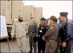 بعدها توجه الوفد إلى نادي ضباط الحرس الوطني بخشم العان حيث قدم اللواء محمد بن خالد الناهض قائد سلاح الإشارة دروعاً تذكارية لأعضاء الوفد.