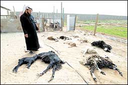 تفاجأ أحد المواطنين صباح يوم الثلاثاء الماضي بنفوق أحد عشر رأسا من الأغنام في مزرعته الواقعة في محافظة ضرماء حيث يقول المواطن سليمان الرضيان أنه اشترى أعلاف ذرة ووضعها لأغنامه مساء وفي الصباح تفاجأ بنفوقها واحدة بعد الأخرى.