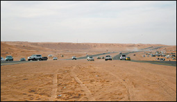 كما قامت (الجزيرة) بطرح بعض التساؤلات لتلك العائلات التي توجد بجانب ذلك الطريق والتي تتلخص عن سبب اختيارهم لهذا الموقع بينما يتوفر بالمنطقة مواقع أخرى بعيداً عن هذا الطريق الدولي الخطر ليجيب لنا فارس السلامة أن الطريق يحتوي على العديد من مؤجري الدراجات النارية والذي يستمتع أطفالنا بقيادتها بينما نستمتع أنا وأم العيال بتحضير وجبة الغداء بينما يبرر مبارك الشمري تواجده قرب الطريق بسبب سيارته الصغيرة من نوع هوندا والتي لا تستطيع شق الرمال بينما يستمتع براك البلوي مع عائلته بمشاهدة استعراضات الشباب على كثبان الرمال.