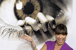 الممثلة السينمائية فرناندا روميرو تقف أمام بوستر لفيلمها الجديد الذي حمل عنوان (العين) أثناء افتتاحه في لوس أنجلس.*رويترز |