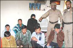 وكانت الحملة الأمنية التي نفذت مساء أمس بقيادة المقدم منذر الحضيف من دوريات الأمن، وشارك في الحملة أمانة منطقة الرياض ودوريات المجاهدين والمرور وفرق مكافحة الغش التجاري ومكافحة المخدرات والدفاع المدني، قد رصدت قيام (6) أشخاص من الجنسية البنغالية بتحويل شقة لوكر دعارة وبيع المنشطات الجنسية الممنوعة على العمالة، كما قامت العصابة بممارسة تهريب الخادمات من كفلائهن حيث ألقي القبض على خادمة من الجنسية الإندونيسية هاربة من كفيلها وتمارس معهم الدعارة، كما عثر لديهم على كميات كبيرة من المنشطات الجنسية الممنوعة حيث تمارس العصابة بيع المتعة المحرمة والمنشطات الجنسية على العمالة الوافدة، كما تمارس العصابة تمرير المكالمات الدولية..