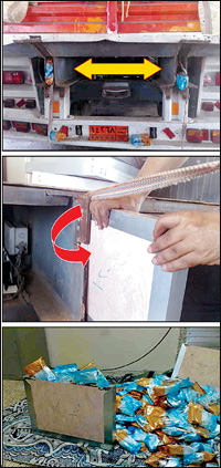 تمكن رجال جمرك ميناء ضباء من ضبط (998000) حبة كبتاجون من داخل تجويفين على امتداد الشاسيه من الجانبين للسيارة. |