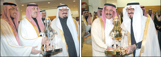 وبعد نهاية الشوط السابع على كأس خادم الحرمين الشريفين لخيل الإنتاج سلم سمو ولي العهد الكأس لصاحب السمو الملكي الفريق أول ركن متعب بن عبدالله بن عبدالعزيز نائب رئيس الحرس الوطني المساعد للشؤون العسكرية إثر فوز الجواد عادل لأبناء الملك عبدالله بن عبدالعزيز بالمركز الأول.وعقب نهاية الشوط الثامن على كأس خادم الحرمين الشريفين للخيل المستوردة سلم سمو ولي العهد الكأس لصاحب السمو الأمير سلطان بن محمد بن سعود الكبير إثر فوز الجواد خريمس لأبناء سمو الأمير محمد بن سعود الكبير بالمركز الأول.إثر ذلك عزف السلام الملكي، ثم غادر سمو ولي العهد ميدان الفروسية مودعاً بالحفاوة والتكريم.