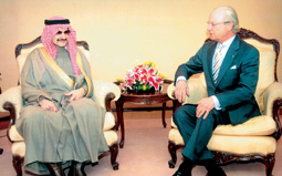 استقبل جلالة الملك كارل جوستاف السادس عشر ملك مملكة السويد في مقر إقامته بقصر المؤتمرات بالرياض صاحب السمو الملكي الأمير الوليد بن طلال بن عبدالعزيز آل سعود، رئيس مجلس إدارة شركة المملكة القابضة يوم الجمعة 15 صفر 1429هـ الموافق 22 فبراير 2008م.