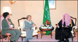 استقبلت معالي وزيرة الداخلية الفرنسية وما وراء البحار والسلطات المحلية ميشيل إليوت ماري في مقر إقامتها بقصر المؤتمرات أمس معالي وزير الشؤون الإسلامية والأوقاف والدعوة والإرشاد الشيخ صالح بن عبدالعزيز آل الشيخ.وتم خلال اللقاء بحث العديد من الموضوعات ذات الاهتمام المشترك بين البلدين الصديقين.حضر اللقاء السفير الفرنسي لدى المملكة بارترون بوزنسو والوفد الرسمي المرافق معالي الوزيرة الفرنسية.