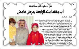 تأكيداً على ما انفردت به (الجزيرة) حول وفاة الطفلة جواهر النشمي الشهراني التي توفيت أثناء وجودها في المدرسة. وما أثير حيالها من بعض الصحف، وجّه وزير التربية والتعليم خطاباً توضيحياً لرئيس هيئة حقوق الإنسان.. جاء فيه: |