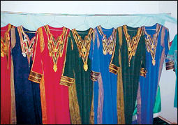 شهد ركن حياكة ثوب الباحة إقبالاً من زوار الجنادرية الذين حرصوا على اقتنائه لما له من خصوصية وميزة في الشكل والخياطة، ويعتبر من أهم التراث للمنطقة، ويمتاز ثوب الباحة بشكله الجميل المحتوي على كل الألوان والمطرز بشكل جميل ومتقن، ويعتبر مميزاً في شكله ومظهره ومطرزاً على التراث القديم بالمنطقة ومحبباً إلى النفس لجماله وروعة تطريزه، وتستخدم ثلاثة أشكال من الألوان وهي اللون الأحمر والأخضر والأصفر ويتم حياكتها يدوياً ويستغرق عمل الثوب قرابة ثلاثة الأسابيع ويستغرق العمل اليومي في خياطة الثوب من ساعتين إلى ثلاث ساعات.