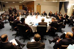 وأوضح العريضي أن الحكومة (ناقشت التطورات والأوضاع السياسية في البلاد في ضوء ما توصلت إليه الاتصالات بشأن تنفيذ المبادرة العربية والاستعدادات لعقد القمة العربية وما يرافق ذلك من نقاشات وسجالات ومواقف وحركة اتصالات مكثفة عربياً ولبنانياً). وكان مصدر وزاري ذكر أن موقف الحكومة التي يدعمها الغرب وغالبية الدول العربية في هذه القضية مرتبط بعنصرين هما (المشاورات مع الدول العربية المساندة ومرور الموعد المحدد لانتخاب رئيس للبنان في 25 آذار - مارس). وذكر المصدر نفسه أن الموقف المبدئي للحكومة هو (الإصرار على أن يتمثّل لبنان في القمة برئيس منتخب). لكن المؤشرات لا تدل على إمكان انتخابه في الجلسة المقبلة بسبب استمرار الخلاف بين الأكثرية التي تمثّلها الحكومة، والمعارضة.