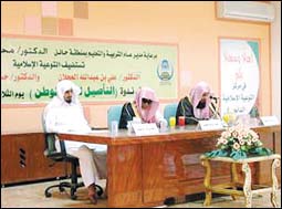 قدم الندوة الأستاذ أحمد بن جزاع الرضيمان مدير التوعية الإسلامية بالإدارة العامة للتربية والتعليم بمنطقة حائل الذي رحب براعي الندوة مدير عام التربية والعليم بمنطقة حائل الدكتور محمد بن إبراهيم العاصم وضيفة وكيل الوزارة للشؤون المدرسية الدكتور عبدالله بن صالح المقبل، وأكد على أهمية موضوع الندوة خاصة في هذا الوقت، ثم انتقل الحديث للدكتور علي بن عبدالله العجلان الذي استهل حديثه بأسباب طرق هذا الموضوع الهام ومناقشته وترسيخه، وذكر حال العالم العربي وما مر به من عصبيات قومية، وما مر به كثير من بلدان المسلمين من استخفاف بحق الوطن وأهله، ومن الأسباب قلة الحديث والتأليف من العلماء والباحثين. ثم بين أن محبة الوطن أمر فطري جبلت عليه النفوس السليمة. وذكر الأدلة الشرعية من الكتاب والسنة وأقوال أهل العلم، واستشهد بحنين الشعراء والأدباء إلى بلدانهم وأوطانهم التي تغربوا عنها. انتقل الحديث للدكتور حسن الهويمل الذي ذكر أن الحديث عن حب الوطن من القضايا التي تستدعي النوازل بالحديث عنها ولم يعهد سابقاً التطرق لهذا الموضوع ولكن بعد تغيير أحوال كثير من البلدان الإسلامية وكثرة القوميات والأحزاب والعصبيات وتعددت الولاة مثل القومية والماركسية فوجب تحرير حب الوطن دينياً وقومياً وسياسياً. وذكر أن حب الوطن غريزة طبيعية لا تحكمها الأنظمة والقونين، وحب الوطن في هذه البلاد لابد أن يكون شرعياً جبلياً، وهو من الولاء والبراء. ويجب على العلماء والمفكرين والكتاب تأصيل حب الوطن في ظل الخطاب الإعلامي الأممي والبعد عن الطرح الذي يستدعي استعداء العالم الغربي ضد هذة البلاد من أجل الخلاف على أمور اجتهادية يجب إن تتسع صدورنا لمثلها ووجوده أمر طبيعي، ويجب إن تحل بالحوار والإقناع. وحب الوطن كما يجب إن يحقق شرعاً يجب إن نمارس هذا الحب في أنفسنا وأن يكون صادقاً ونزيهاً ولا يكون شكلياً وذلك بالكشف عن أوكار الخيانة والغدر سواء كانت أخلاقياً أو سياسياً أو دينياً ومحاولة القضاء على كل سلوك مشين يخل بأمن الوطن وأن يتخلى في نفس المسلم بر الأمان ولا يجوز التعادي والتدافع بيننا واستنصار الأعداء على الوطن من أجل الخلاف على أمور اجتهادية. حضر الندوة عدد من رجال التربية والتعليم والمسؤولين والمشرفين التربويين.