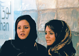 سيدتان أثناء حضورهما لافتتاح أول فندق نسائي في السعودية، أسسته مجموعة من سيدات الأعمال السعوديات، حيث يهدف الفندق إلى اجتذاب الزائرات من السعودية و دول الخليج، وتلبية احتياجات القادمات إلى الرياض في رحلات عمل، أو الباحثات عن الاسترخاء.* (أ.ف.ب) |